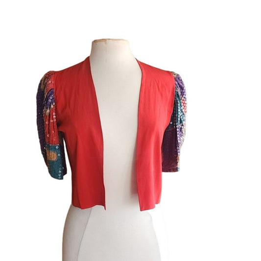 80s Cropped Jacket Red Silk + Sequined Sleees Sansappelle