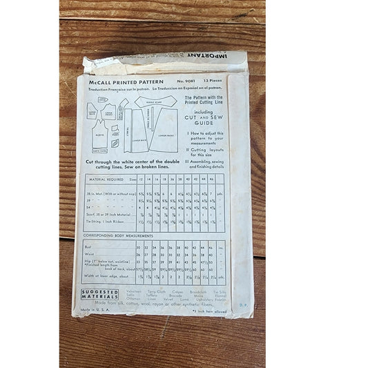 1930s Sewing Pattern: House Coat McCall Printed Pattern 9081