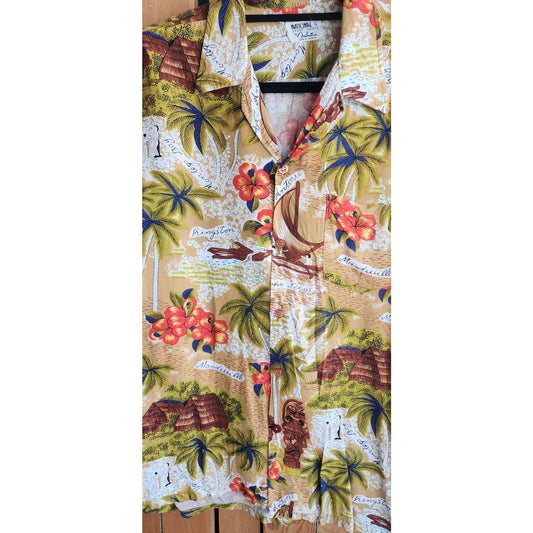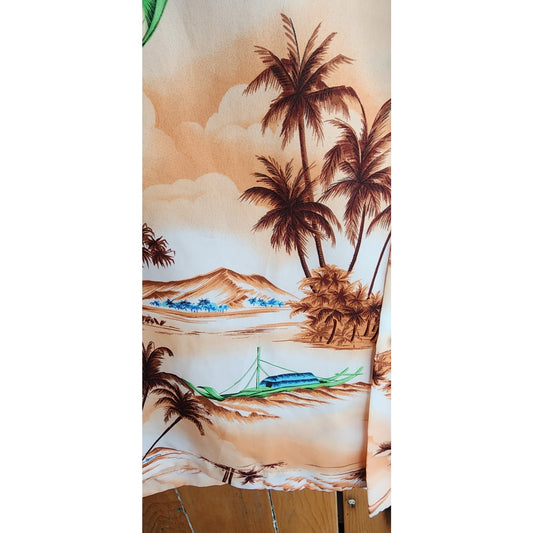 70s Hawaiian Print Mens Shirt Tropical Caribbean Palm Trees