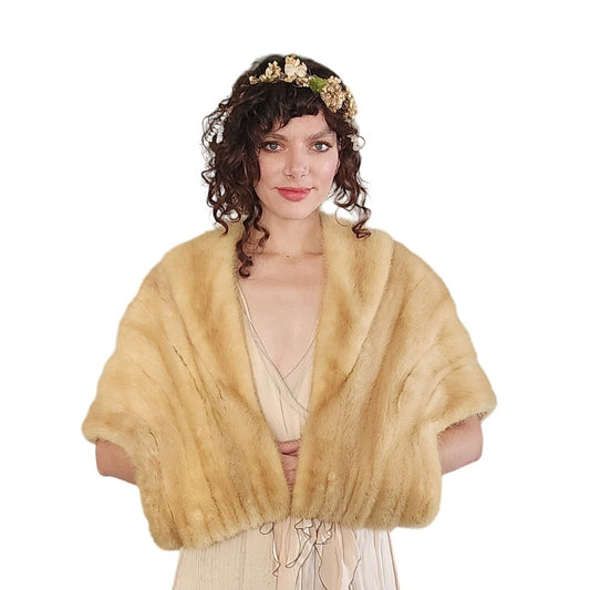 50s Blonde Mink Fur Shrug Wrap Stole Vintage Bride Wedding