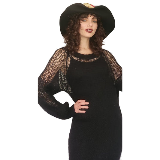 Y2K Sonia Rykiel Black Sweater Dress Open Knit Wool