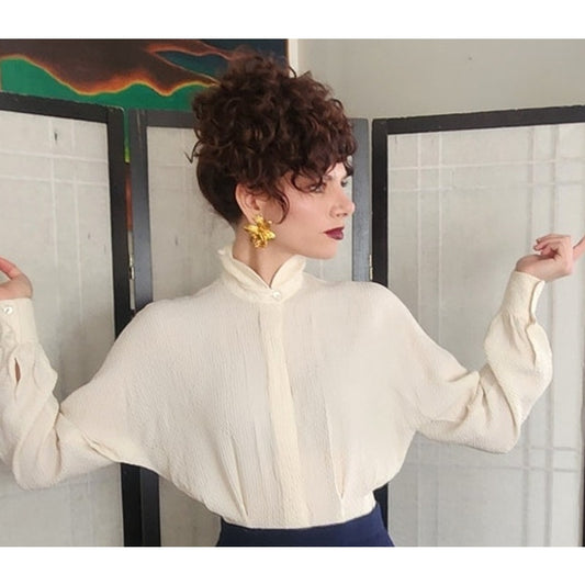 80s Escada Blouse Cream Textured Silk / 34