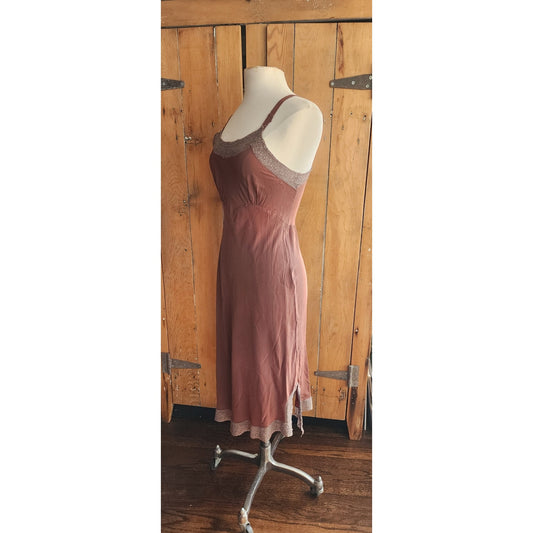 30s Brown Silk Slip Dress w/Lace by Fantasy Lingerie