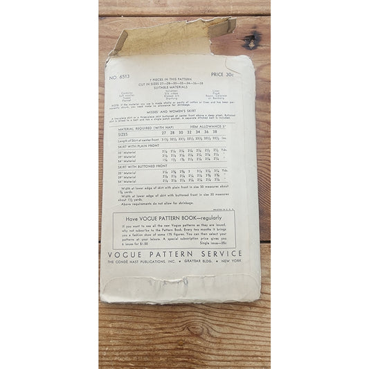 Vintage 30s Sewing Pattern: Long Skirt Vogue Pattern 6513