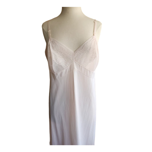 60s Slip Dress White Pale Pink Nylon & Lace Van Raalte Large
