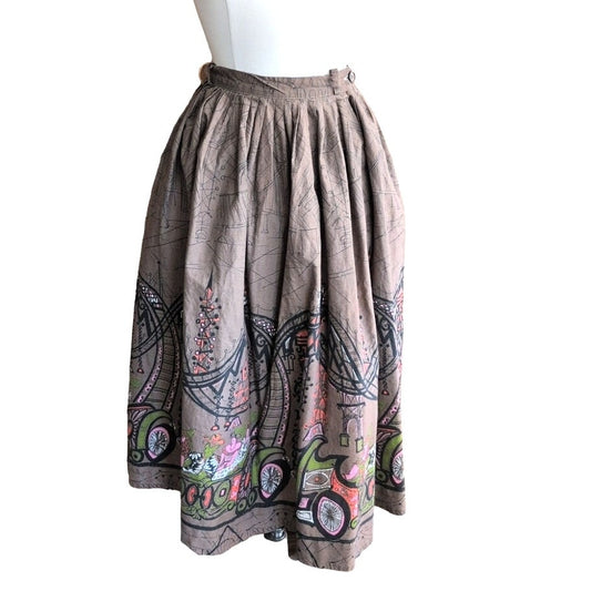 50s Rockabilly Skirt Novelty Cotton Print Circus Folk by Betty Sue