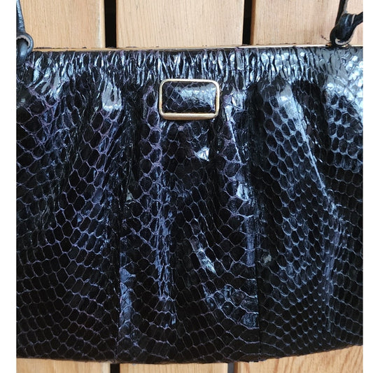 Vintage 80s Black Snake Print Clutch/Shoulder Bag