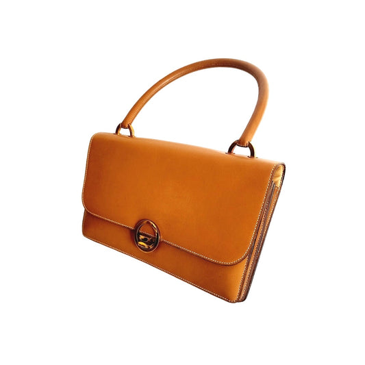Vintage 60s Hermes Ring Handbag Brown Veau Box Leather