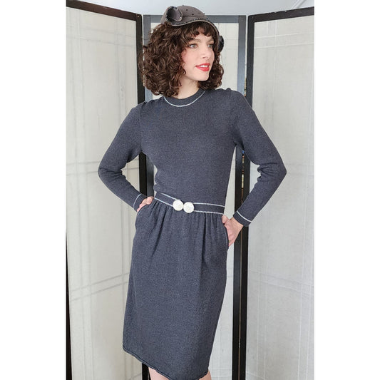 Vintage 70s sweater Dress Gray Knit w/Belt Don Sayres