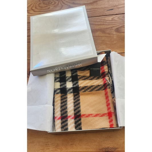 Vintage Burberry Cashmere Scarf Beige Plaid NWT