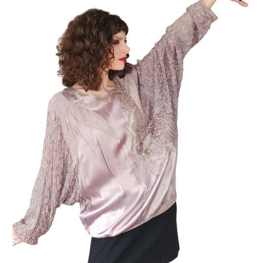 Vintage 80s Embroidered Sweater Tunic Mauve Purple A.C. Imports