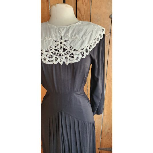 Vintage 80s Black Dress Lace Collar Neo Edwardian