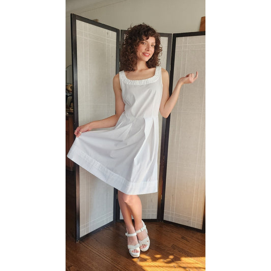 Vintage 2000s Miu Miu Sleeveless Dress in White Cotton