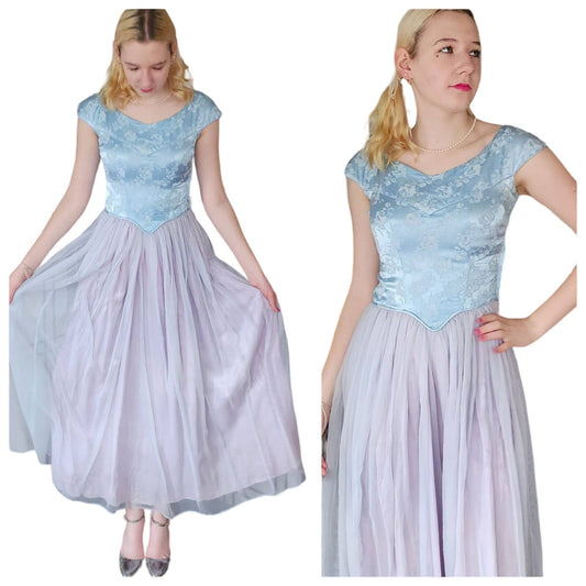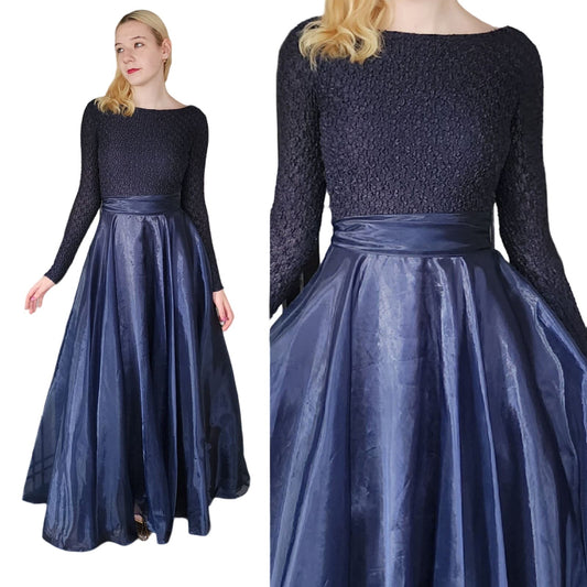 Vintage Navy Blue Evening Dress w/Organza Skirt JS Collections