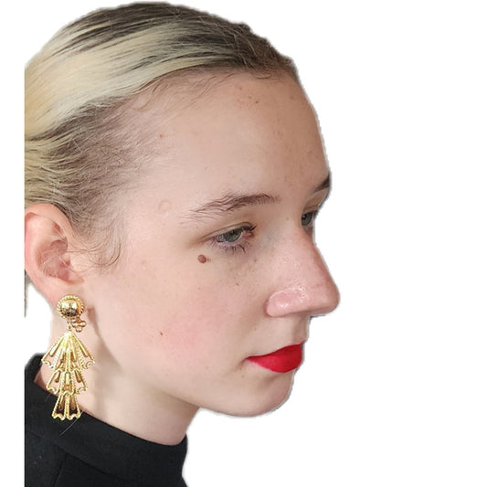 Vintage 60s Earrings Gold Dangly Clips Fan Shaped