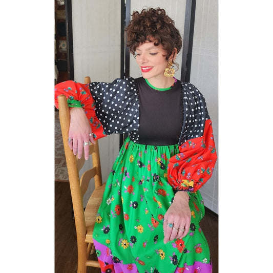 Vintage 70s Maxi Dress Balloon Sleeve Mixed Floral Print Print Hippie Boho by Youth Guil