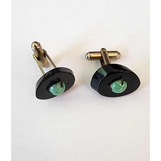 Vintage 50s Cufflinks Hawaiian Black Coral Jade 12K Gold Filled