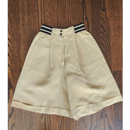 Vintage 80s Claude Montana Shorts Beige Black Linen Blend