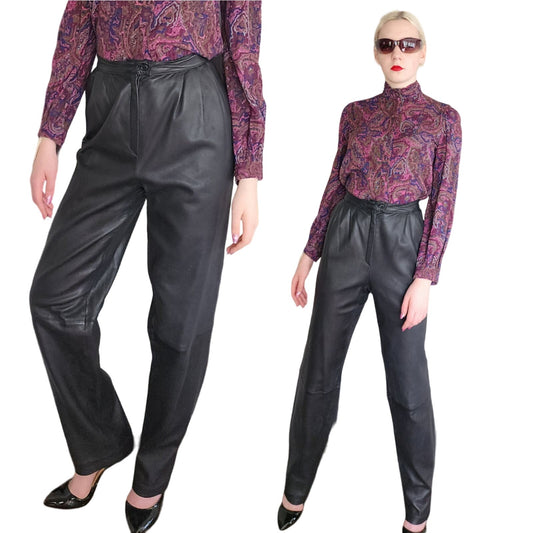 Vintage 80s Leather Pants Pleated Black Betty Hanson