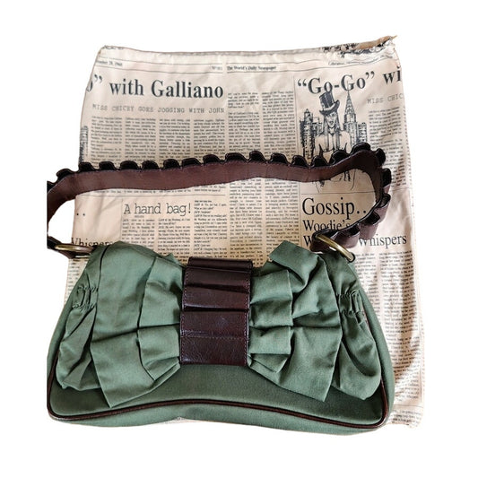 Vintage John Galliano Bag Green Fabric & Brown Leather w/ Bow Design