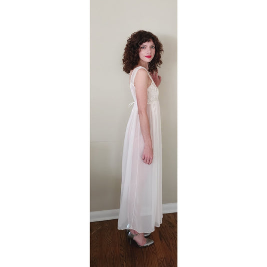 Vintage 70 Nightdress Cream Lace Embroidery by Jonquil