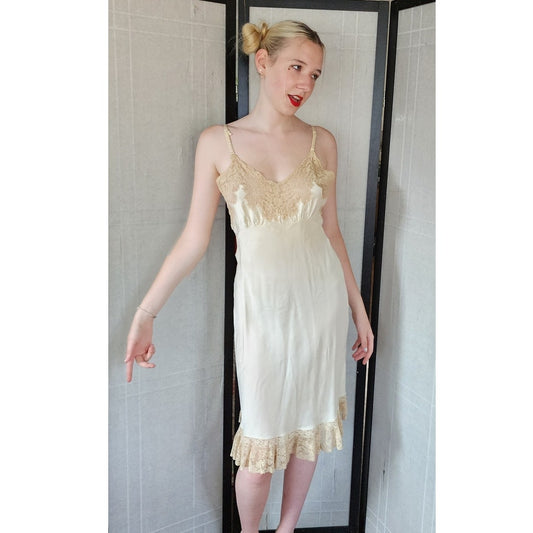 Vintage 30s Slip Dress Cream Silk Lace Bias Cut