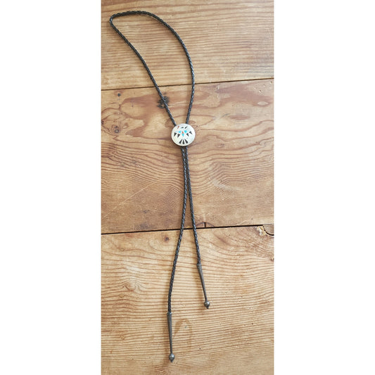 Vintage Thunderbird Bolo Tie by Bennett C31 Silver Inlay Native American