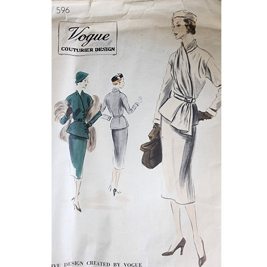 Vintage 50s Sewing Pattern Vogue 596 Suit Dress Skirt Jacket Scarf