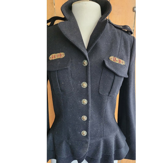 Vintage 80s Black Wool Blazer Heraldic Embroidery Manigance