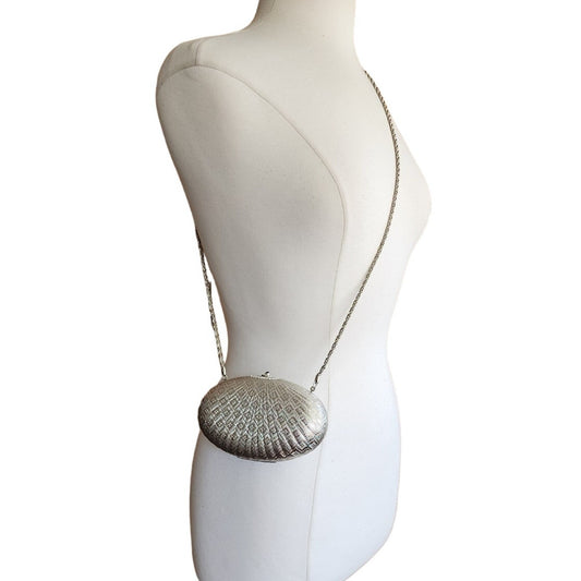 Vintage Neiman Marcus Bag Minaudiere Silver Clamshell Vanity Purse