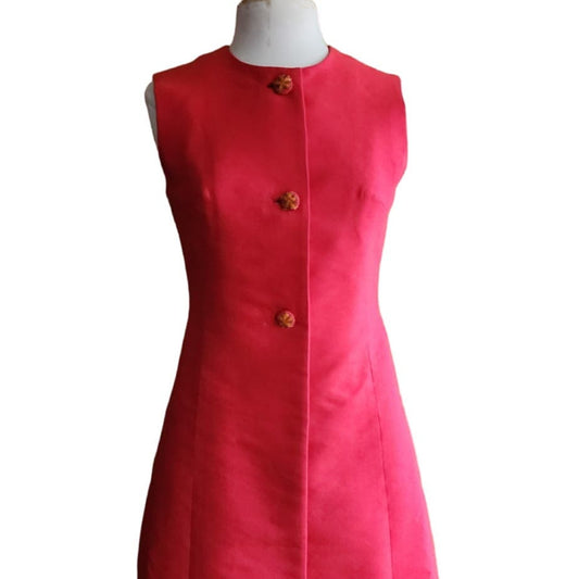 Vintage 60s Red Wool Mod Duster Long Vest Tunic Custom Made