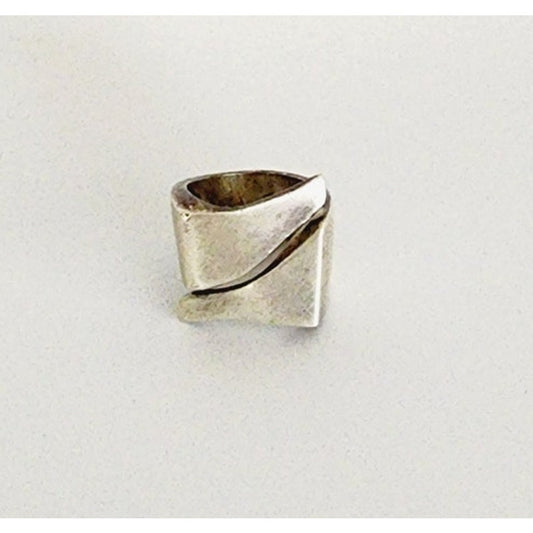 Vintage Sterling Silver Ring Brutalist Sculptural Style Size 4.5