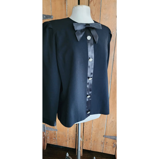 Vintage 80s Blazer Black Satin Bow Rhinestone Buttons Katherine Lindsay