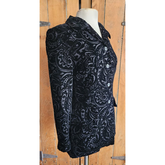 Vintage 90s Burnout Velvet Blazer Black Jacket Annie Alexander