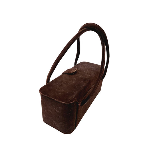 Vintage 40s Brown Box Bag Brushed Suede Theodor California