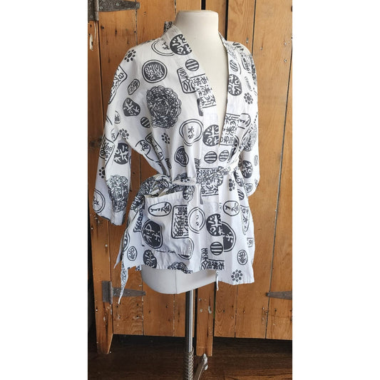 Vintage Haori or Hapi Jacket White Cotton Print Japanese