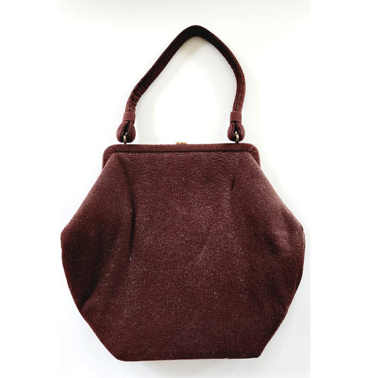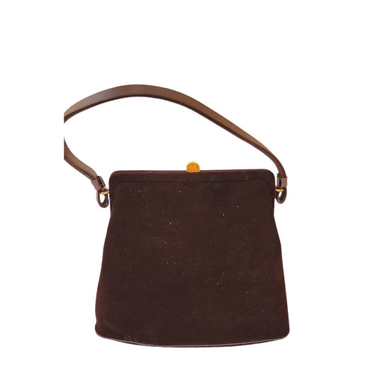 Vintage 40s Brown Handbag Brushed Suede Manon Art Deco