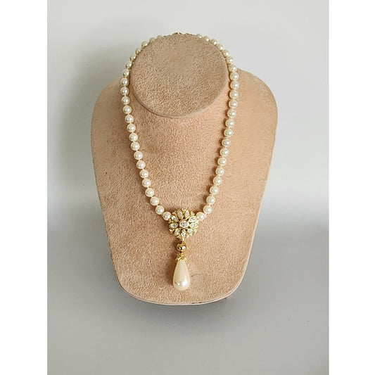 Vintage Christian Dior Necklace Clip Earrings Set Pearl Bead + Gold