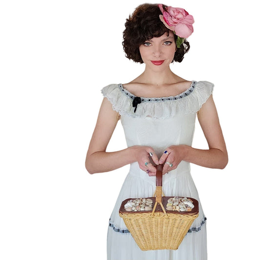Vintage 70s Sun Dress Gray Stripe Ruffled Skirt