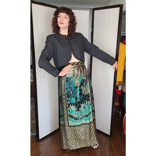 Vintage 70s Maxi Skirt Orientalist Persian Mughal Brocade Blue Gold Metallic