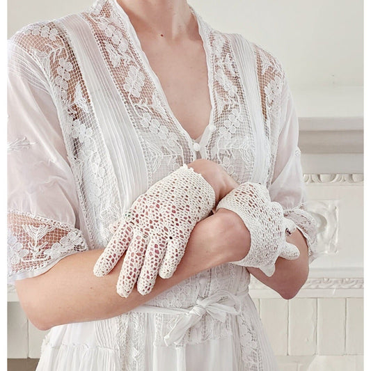 Vintage Gloves Ivory Crochet Lace Stretchy Cottagecore