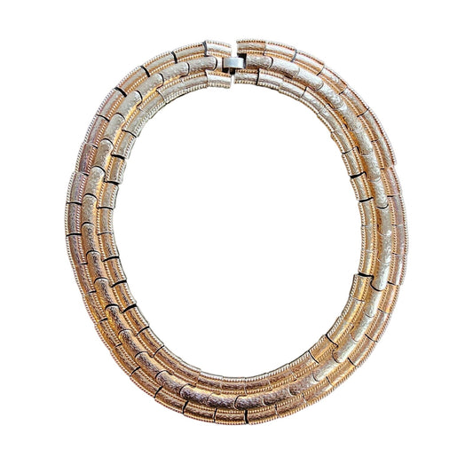 Vintage 70s Gold Metal Choker Necklace Egyptian Revival