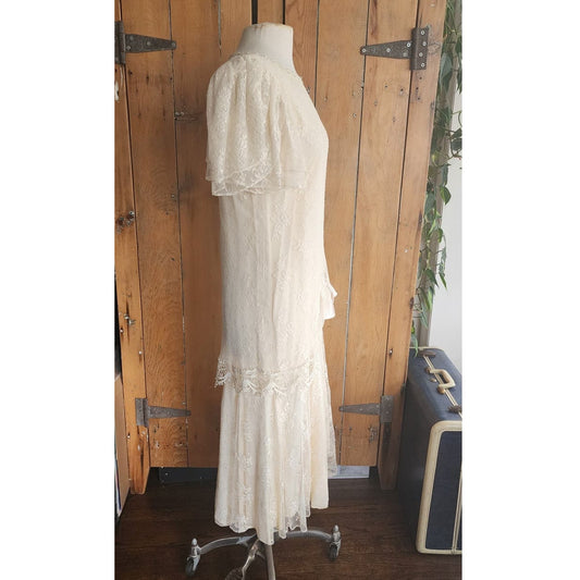 Vintage 80s Cream Lace Dress 20s Flapper Style