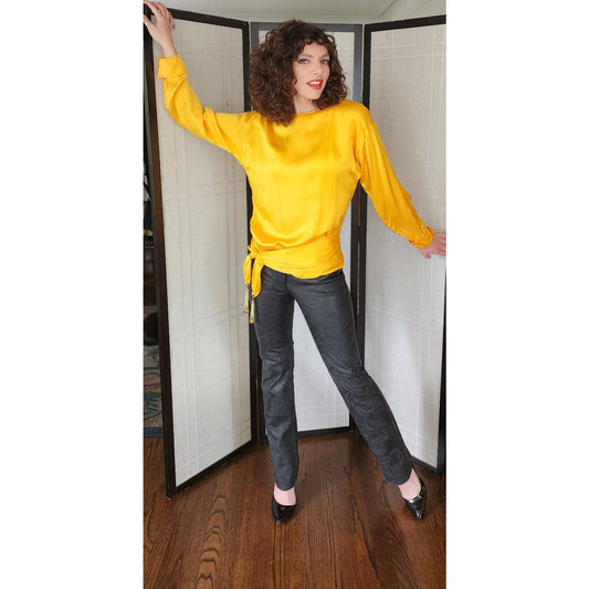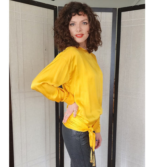 90s Yellow Silk Blouse Tasseled Hip Scarf Laurel