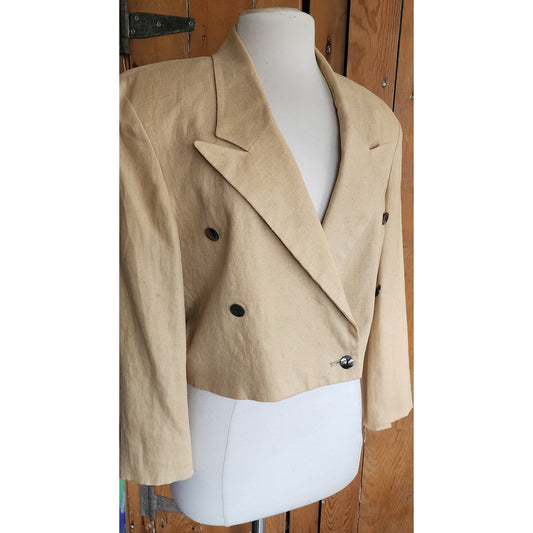 Vintage 80s Beige Linen Blazer Cropped Jacket Marshall Fields