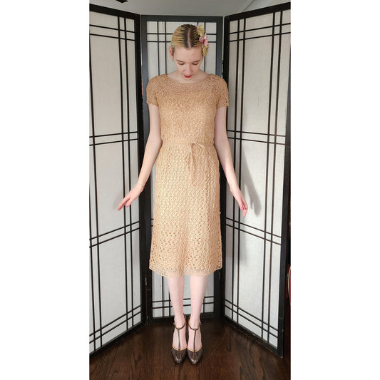 Vintage 50s Ribbon Lace Dress Helen Barbieri Beige Peach