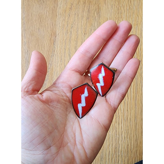 Vintage Cufflinks Red White Enamel Lightning Shields 25th Infantry Division