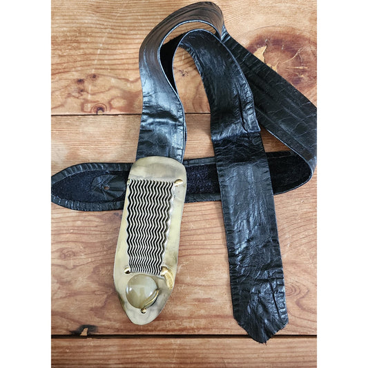 Vintage 80s Belt Artisinal Avant Garde Brass Buckle Signed