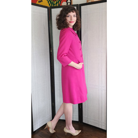 Vintage 60s Nina Ricci Paris Dress + Coat Set Hot Pink Fuschia M
