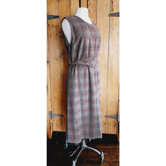 Vintage 70s Plaid Dress Pendleton Sleeveless Belted Brown Tartan